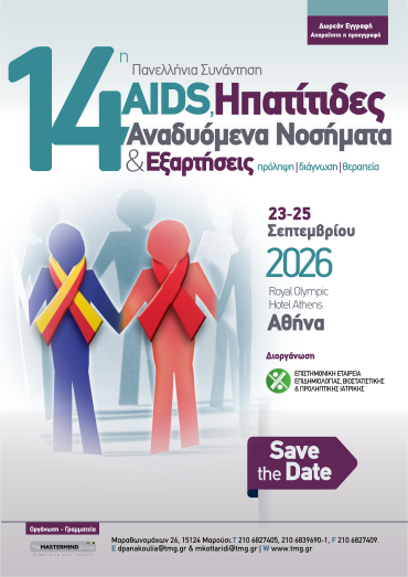 14η Πανελλήνια Συνάντηση "AIDS, Ηπατίτιδες, Αναδυόμενα Νοσήματα & Εξαρτήσεις - Πρόληψη - Διάγνωση - Θεραπεία / 23 - 25 Σεπτεμβρίου 2026 / Royal Olympic Athens