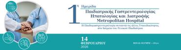 Η 1η Ημερίδα Παιδιατρικής Γαστρεντερολογίας, Ηπατολογίας και Διατροφής του Νοσοκομείου Metropolitan με θέμα «Η Παιδογαστρεντερολογία συναντά τις άλλες Υποειδικότητες στο Ιατρείο του Γενικού Παιδιάτρου», θα διεξαχθεί στην Αθήνα (ξενοδοχείο Royal Olympic), στις 14 Φεβρουαρίου 2026.