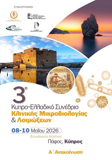 3ο ΚΥΠΡΟ-ΕΛΛΑΔΙΚΟ ΣΥΝΕΔΡΙΟ ΚΛΙΝΙΚΗΣ ΜΙΚΡΟΒΙΟΛΟΓΙΑΣ & ΛΟΙΜΩΞΕΩΝ , 08-10 ΜΑΪΟΥ 2026, ΞΕΝΟΔΟΧΕΙΟ ALIATHON, ΠΑΦΟΣ, ΚΥΠΡΟΣ