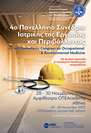 4ο ΠΑΝΕΛΛΗΝΙΟ ΣΥΝΕΔΡΙΟ ΙΑΤΡΙΚΗΣ ΤΗΣ ΕΡΓΑΣΙΑΣ ΚΑΙ ΠΕΡΙΒΑΛΛΟΝΤΟΣ, 28 - 30 ΝΟΕΜΒΡΙΟΥ 2025, ΑΜΦΙΘΕΑΤΡΟ OTEACADEMY, ΑΘΗΝΑ