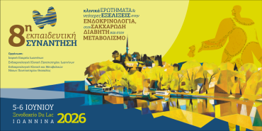 Σας ανακοινώνουμε την 8η Εκπαιδευτική Συνάντηση που συνδιοργανώνουν οι Ενδοκρινολογικές Κλινικές των Πανεπιστημίων Ιωαννίνων και Θεσσαλίας με θέμα «Κλινικά Ερωτήματα και νεότερες εξελίξεις στην Ενδοκρινολογία, στο Σακχαρώδη Διαβήτη και στο Μεταβολισμό» στις 5 και 6 Ιουνίου του 2026 στο Ξενοδοχείο Du Lac στα Ιωάννινα.