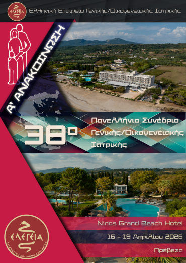 Α' Ανακοίνωση 38ου Πανελληνίου Συνεδρίου Γενικής/Οικογενειακής Ιατρικής, Πρέβεζα 16 έως 19 Απριλίου 2026