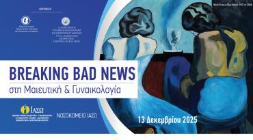 Τα τμήματα Γυναικολογικής Ογκολογίας, Εμβρυομητρικής Ιατρικής και Παιδικής και Εφηβικής Γυναικολογίας της Α’ Μαιευτικής και Γυναικολογικής Κλινικής του ΕΚΠΑ διοργανώνουν για δεύτερη φορά την ημερίδα «Breaking Bad News» ή πώς να επικοινωνούμε τα άσχημα νέα στις ασθενείς, τις επίτοκες και τους συγγενείς τους. Η ημερίδα απευθύνεται σε Μαιευτήρες-Γυναικολόγους, τις μαίες και το νοσηλευτικό προσωπικό και θα διεξαχθεί στις 13 Δεκεμβρίου 2025, στο Νοσοκομείο ΙΑΣΩ.
