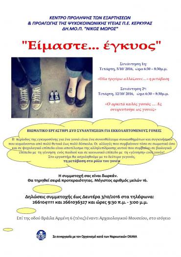 ΔΗ.ΜΟ.Π. "ΝΙΚΟΣ ΜΩΡΟΣ": βιωματικό εργαστήρι για εγκύους 29/09/2016 Βιωματικό εργαστήρι δύο συναντήσεων.