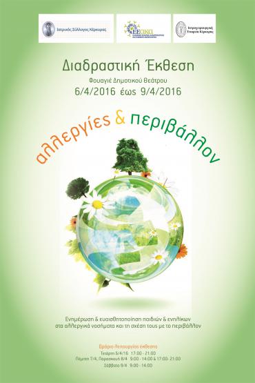 Ο Ιατρικός Σύλλογος Κέρκυρας, στα πλαίσια της Παγκόσμιας Εβδομάδας Αλλεργίας, σε συνεργασία με την Ελληνική Εταιρεία Αλλεργιολογίας και Κλινικής Ανοσολογίας (ΕΕΑΚΑ), την Πανελλήνια Ένωση Αλλεργιολόγων και την Ιατροχειρουργική Εταιρεία Κέρκυρας, διοργανώνουν Διαδραστική Ενημερωτική Έκθεση στο φουαγιέ του Δημοτικού Θεάτρου με θέμα «Αλλεργίες και Περιβάλλον» από 6 έως 9/4/2016, με σκοπό την ενημέρωση και ευαισθητοποίηση παιδιών και ενηλίκων στα αλλεργικά νοσήματα και τη σχέση τους με το περιβάλλον.