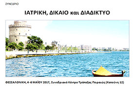Το Εργαστήριο Μελέτης Ιατρικού Δικαίου και Βιοηθικής του Αριστοτελείου Πανεπιστημίου Θεσσαλονίκης, ο Δικηγορικός Σύλλογος Θεσσαλονίκης και ο Ιατρικός Σύλλογος Θεσσαλονίκης διοργανώνουν Διεθνές Συνέδριο, με θέμα: «Ιατρική, Δίκαιο και Διαδίκτυο», που θα πραγματοποιηθεί στη Θεσσαλονίκη, από τις 4 ως τις 6 Μαΐου 2017, στο Συνεδριακό Κέντρο της Τράπεζας Πειραιώς ( Κατούνη 12 – 14).