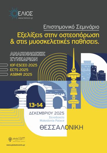 Επιστημονικό Σεμινάριο: Εξελίξεις στην οστεοπόρωση & στις μυοσκελετικές παθήσεις. Ανακοινώσεις Συνεδρίων IOF-ESCEO 2025, ECTS 2025, ASBMR 2025, 13-14 Δεκεμβρίου 2025, Θεσσαλονίκη