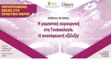 Η Πανελλήνια Εταιρεία Ρομποτικής Γυναικολογικής Χειρουργικής διοργανώνει τη 2η Ημερίδα, η οποία θα πραγματοποιηθεί το Σάββατο 9 Μαΐου στο ΙΑΣΩ, με τίτλο: «Η ρομποτική χειρουργική στη Γυναικολογία. Η αναπόφευκτη εξέλιξη».