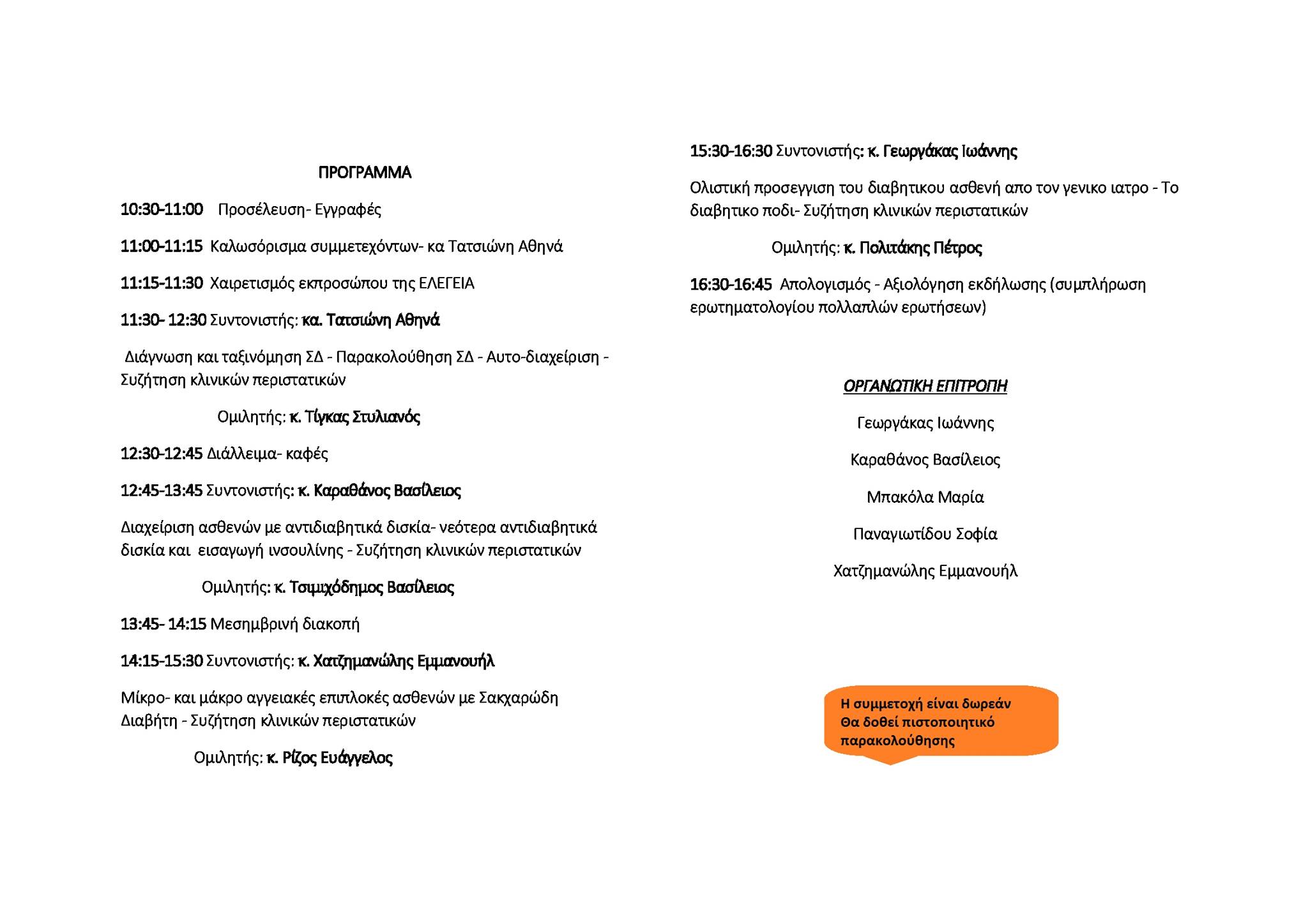 Ημερίδα για το Σακχαρώδη Διαβήτη, Ιωάννινα 26/03