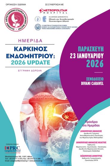 Kαρκίνος Ενδομητρίου: Παρασκευή 23 Ιανουαρίου 2026 Divani Caravel Hotel Αθήνα 06/11/2025 Πληροφορίες Συνεδρίου Έναρξη: 23 ΙΑΝΟΥΑΡΙΟΥ 2026Λήξη: 23 ΙΑΝΟΥΑΡΙΟΥ 2026Πόλη: ΑΘΗΝΑΤοποθεσία: DIVANI CARAVEL HOTELΣχετικός σύνδεσμος: REGISTRATION LINK Συνημμένα αρχεία: ΕΠΙΣΤΗΜΟΝΙΚΟ ΠΡΟΓΡΑΜΜΑ ΚΑΡΚΙΝΟΣ ΕΝΔΟΜΗΤΡΙΟΥ 2026.pdf (31 Λήψεις)