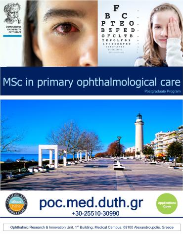 Το Τμήμα Ιατρικής του Δημοκριτείου Πανεπιστημίου Θράκης, διοργανώνει Πρόγραμμα Μεταπτυχιακών Σπουδών το οποίο οδηγεί στην απονομή του τίτλου «Μεταπτυχιακό Δίπλωμα Ειδίκευσης στην Πρωτοβάθμια Οφθαλμολογική Φροντίδα» - MSc in Primary Ophthalmological Care.