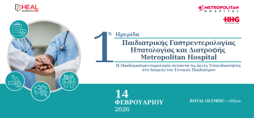 Η 1η Ημερίδα Παιδιατρικής Γαστρεντερολογίας, Ηπατολογίας και Διατροφής του Νοσοκομείου Metropolitan με θέμα «Η Παιδογαστρεντερολογία συναντά τις άλλες Υποειδικότητες στο Ιατρείο του Γενικού Παιδιάτρου» θα πραγματοποιηθεί στις 14 Φεβρουαρίου 2026, στο ξενοδοχείο Royal Olympic, στην Αθήνα.