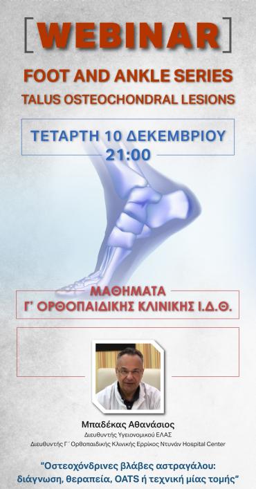 WEBINAR: "Foot and Ankle Series: Talus Osteochondral Lesions" 10-12-2025| 21:00 12/12/2025 πατήστε ΕΔΩ για περισσότερες πληροφορίες