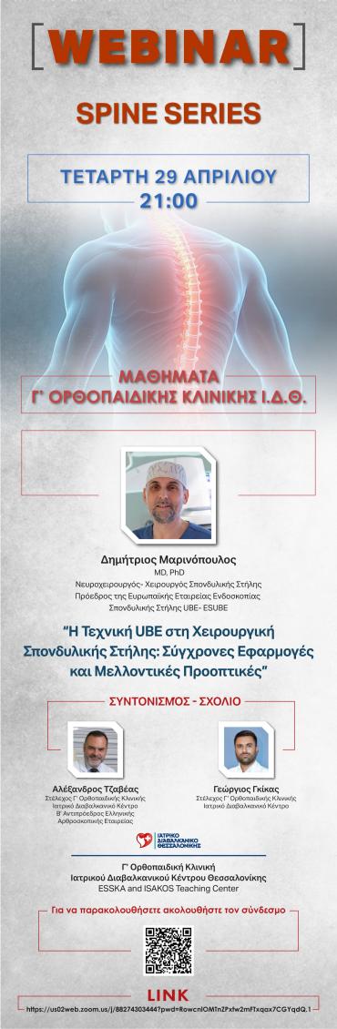 WEBINAR: Spine Series "Η τεχνική UBE στην Χειρουργική Σπονδυλικής Στήλης" 29-04-2026| 21:00